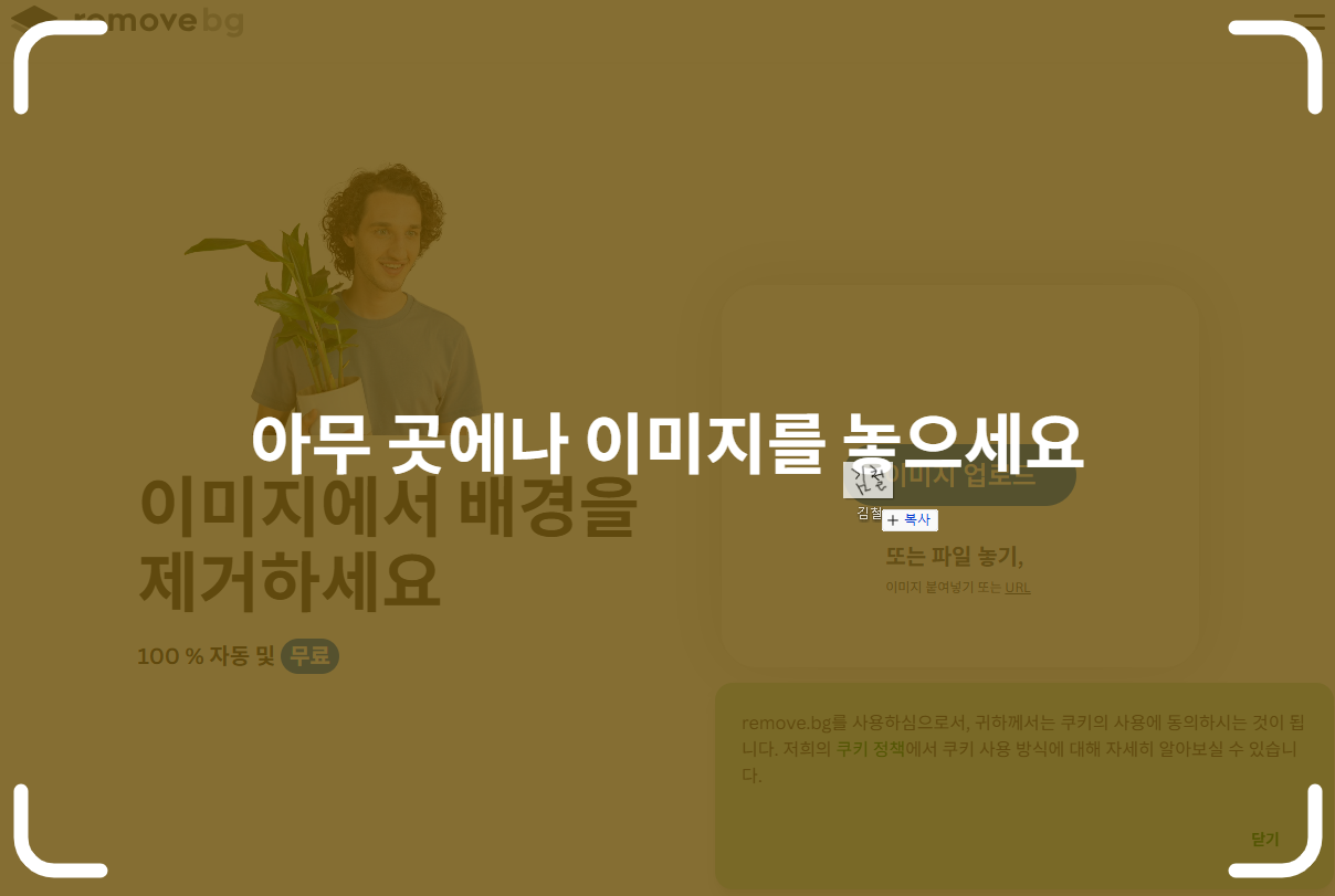 그럼 이제 이미지 배경을 제거하겠습니다. 아래를 클릭해 주세요.